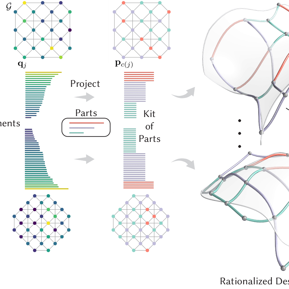 This project introduces a computational framework to rationalize bending-active structures into a minimal, reusable kit-of-parts (KOP). Instead of designing custom elements for each structure, our method identifies optimal geometries that can be shared across multiple designs. To manage the complexity of assigning parts to different assemblies—a process that becomes computationally intractable through exhaustive search—we propose a continuous optimization strategy. This approach integrates a physics-based simulation that accurately models elastic deformation, enabling effective exploration of the trade-off between fabrication simplicity and design fidelity.